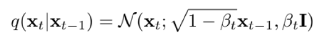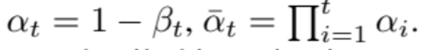 𝛽𝑡 (variance schedule)는 0~1 사이 값을 갖는데, 각 time-step 마다 noise 를 얼마나 줄지를 결정한다.
