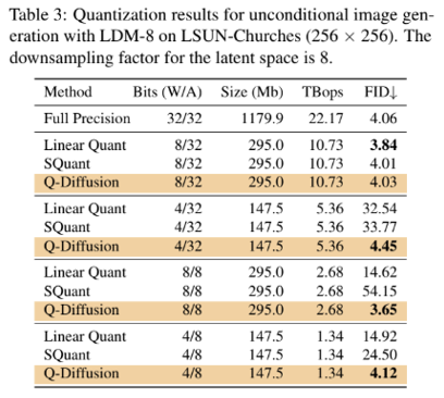 Result: 성능을 유지하면서 training-free 방식으로 4-bit 로 quantizing 에 성공 (small FID change of at most 2.34 compared to >100 for traditional PTQ) 하였다.